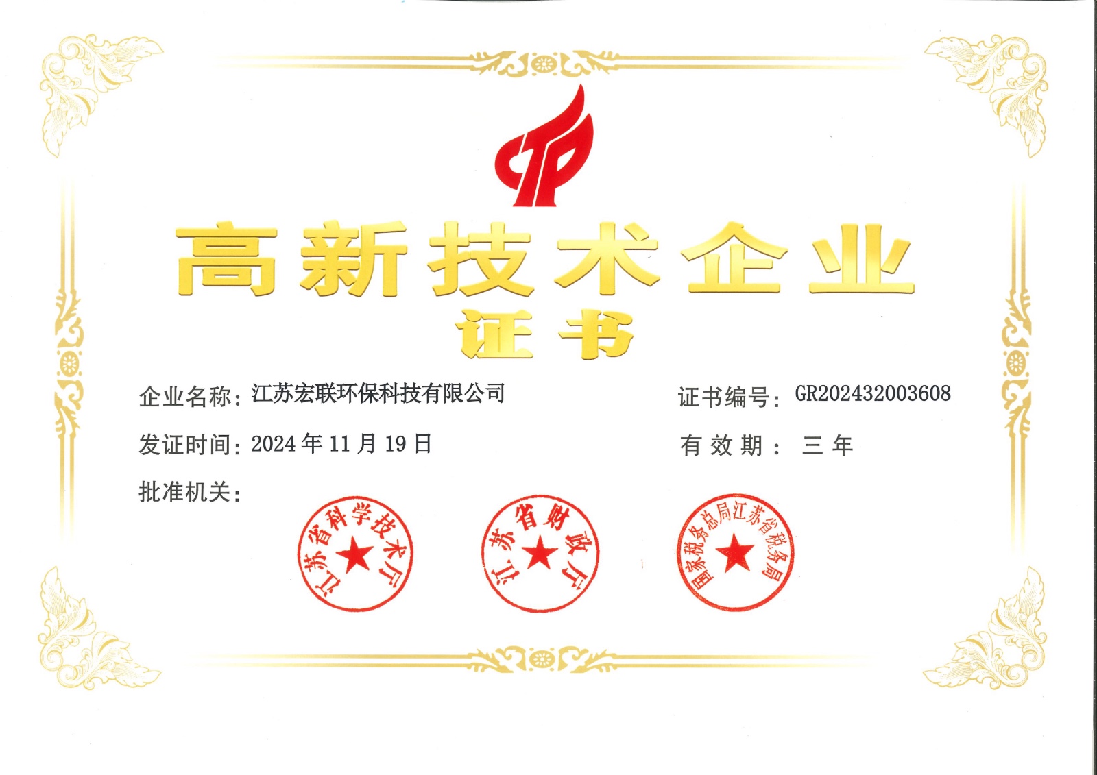 高新技术企业证书