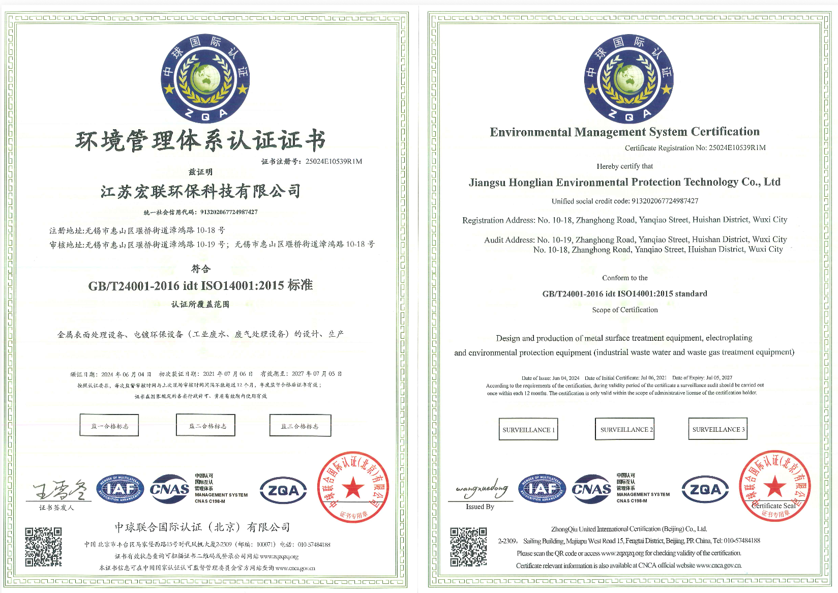 ISO14001:2015环境管理体系认证证